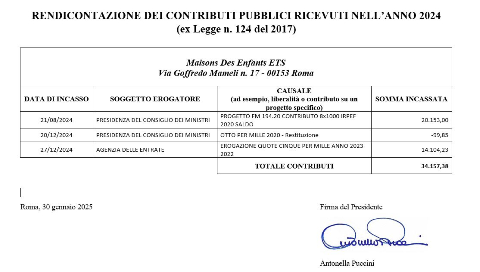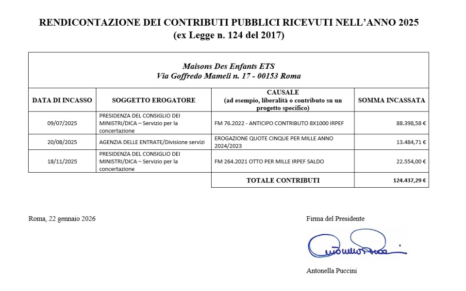 CONTRIBUTI DA PARTE DI ENTI DELLA PUBBLICA AMMINISTRAZIONE
