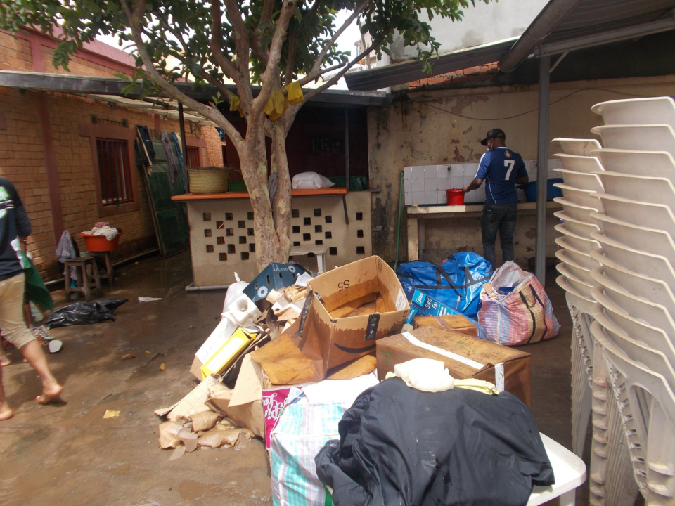 Il personale di MA.D.E. ha lavorato molto per ripulire i locali e salvare tutto il materiale presente in magazzino. Nonostante gli sforzi, una parte delle nostre riserve di riso, sale, materiale per l’igiene, abbigliamento per bambini e materiale elettronico è stata danneggiata dall'acqua infiltratasi nei locali del centro.