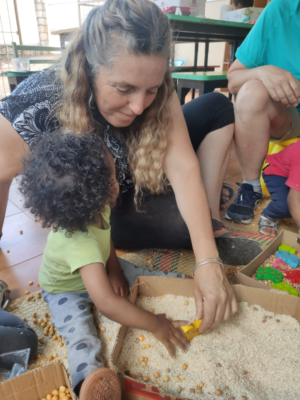 Abbiamo passato con loro cinque giorni intensi, organizzando laboratori sensoriali in cui i bambini, potessero relazionarsi con gli altri e con l’ambiente, attraverso tutto il corpo, mettendosi a contatto con materiali, consistenze, profumi e suoni per loro del tutto nuovi.