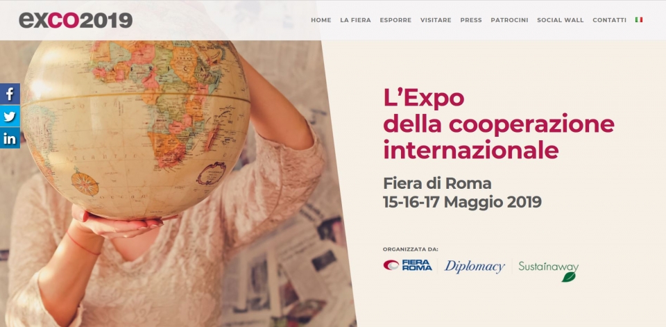 L'EXCO2019 è stata ideata e realizzata da Fiera di Roma, Diplomacy e Sustainaway. La ricca agenda congressuale sarà patrocinata dalla Commissione Europea, dal Ministero degli Affari Esteri e della Cooperazione Internazionale, Agenzia Italiana per la Cooperazione allo Sviluppo, IFAD.