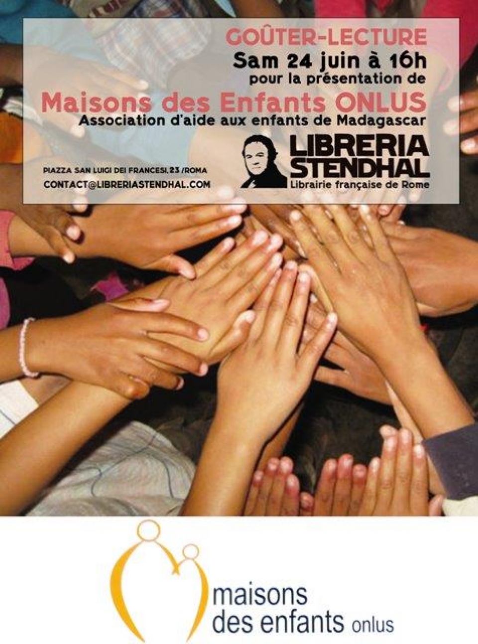 Appuntamento per tutti, grandi e piccini, sabato 24 giugno alle 16 a Roma: la Libreria Stendhal, la librairie française di Roma, ospita la presentazione dei progetti di Maisons Des Enfants ONLUS.
