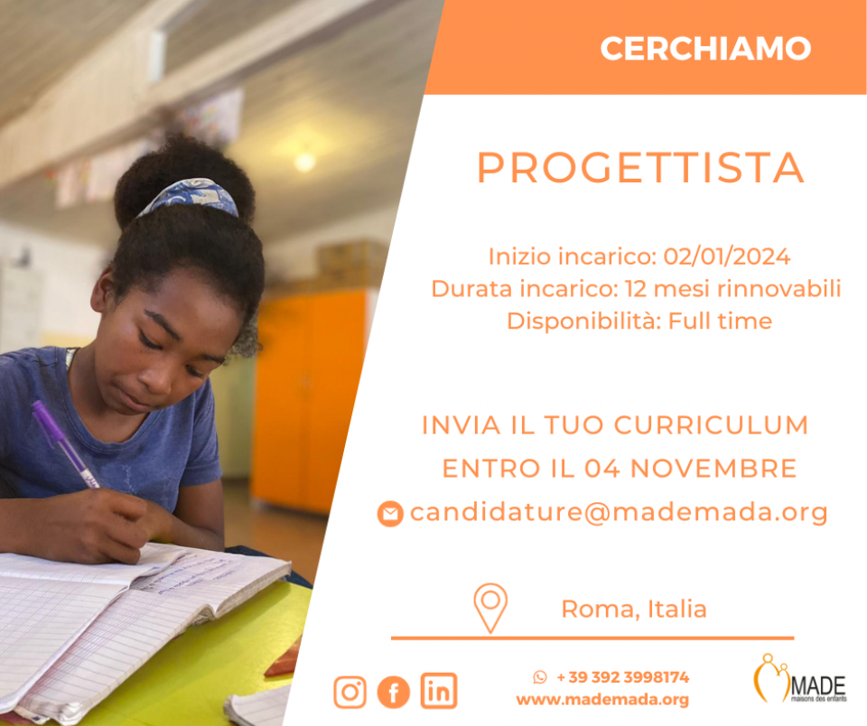 MAISONS DES ENFANTS ONLUS (MADE) sta selezionando un/a Progettista da inserire nella sua